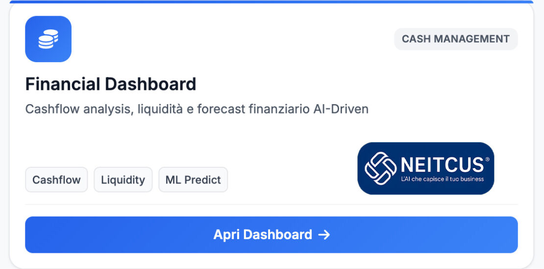 La Dashboard Finanziaria di NEITCUS® nasce con un obiettivo preciso: fornire un quadro completo, aggiornato e realmente utile della posizione finanziaria aziendale, consentendo una valutazione chiara e immediata della sostenibilità economica nel breve, medio e lungo periodo.